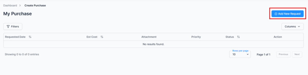 Note: If your organization has an approval workflow configured for purchase requests, all submissions will follow the defined workflow before final approval.