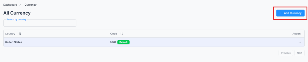 On Admin → Currency, Add and manage multiple currencies for your organization.