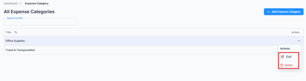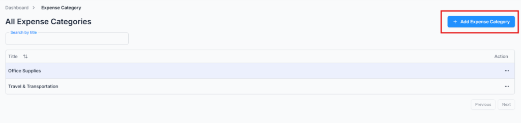On Admin → Expense Category, set up predefined expense categories to streamline billing and reimbursement.
