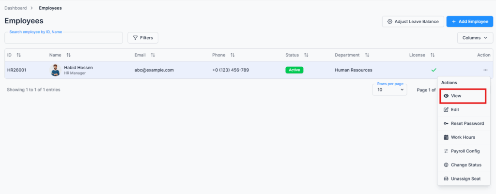 The View Employee Details page consolidates personal and employment information, assigned assets, benefits, leave quotas, and extra work balances, etc. This centralized view enables admins to make informed decisions, track employee entitlements, and ensure accurate recordkeeping.